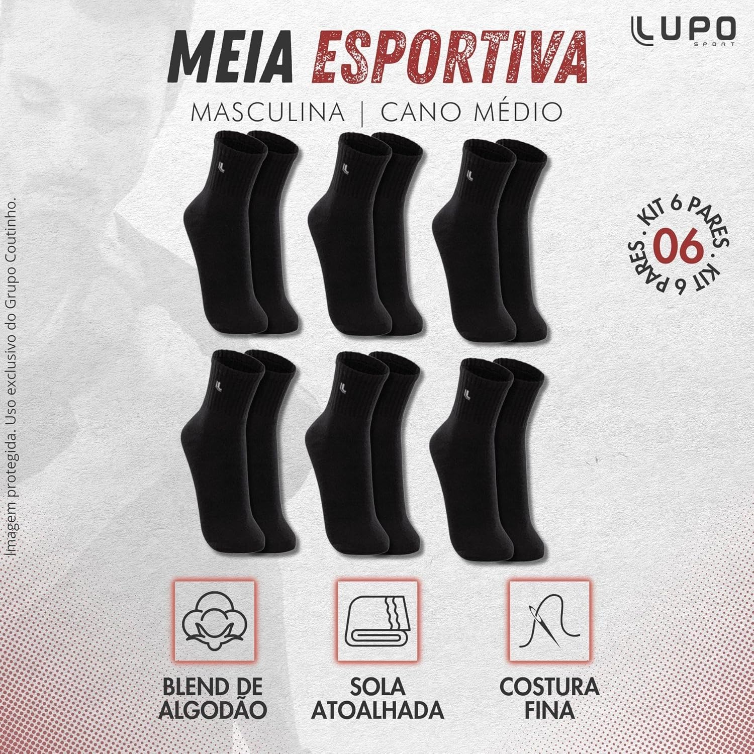 Compre online Lupo Kit 6 Pares de Meia Lupo Cano Médio Forro Atoalhado Punho Canelado Algodão Sport Original, 6 Preta, 37-40 na Amazon. Frete GRÁTIS em milhares de produtos com o Amazon Prime. Encontre diversos produtos da marca Lupo com ótimos preços.