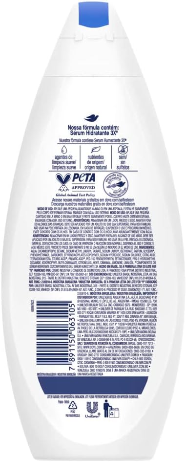 - O Sabonete Líquido para o corpo Dove Nutrição Profunda 24h de Hidratação hidrata a pele em apenas 1 banho