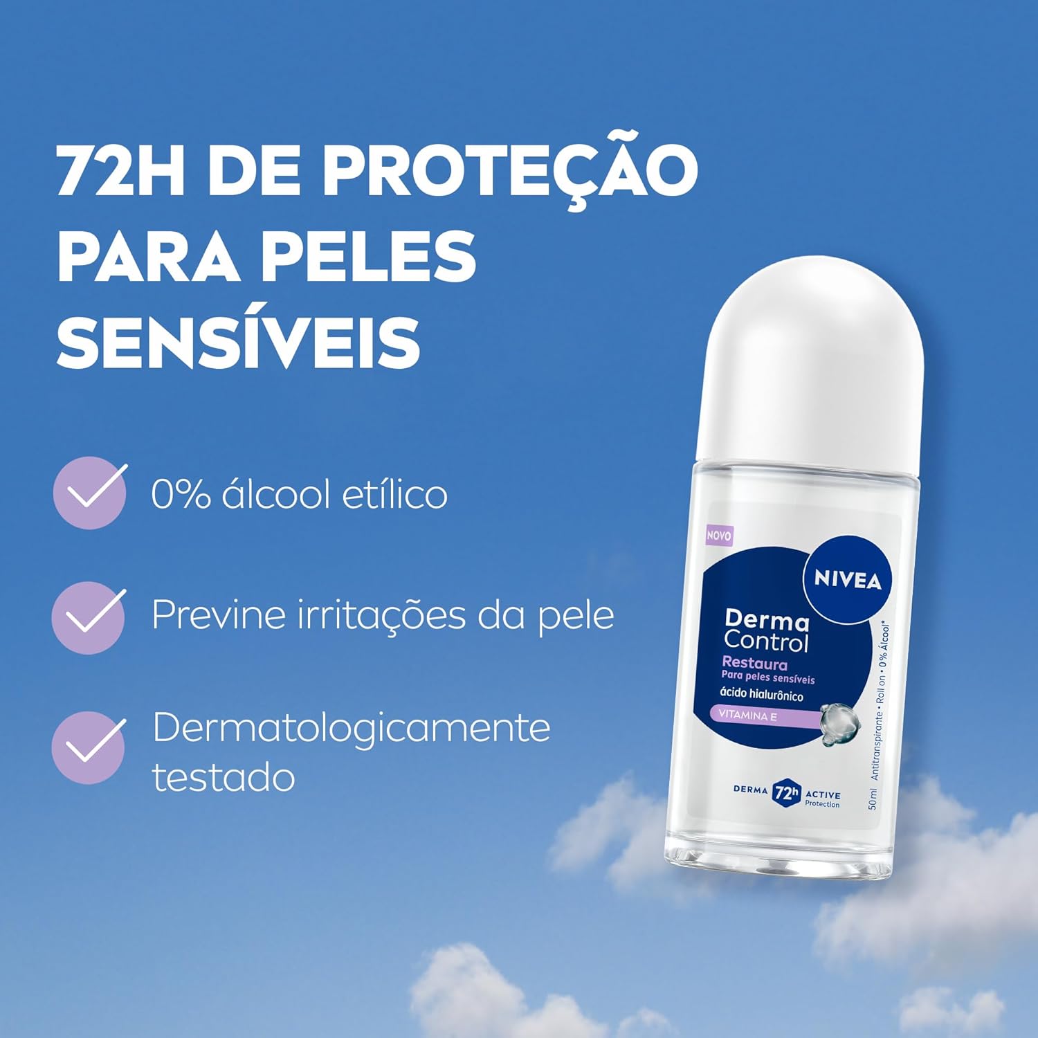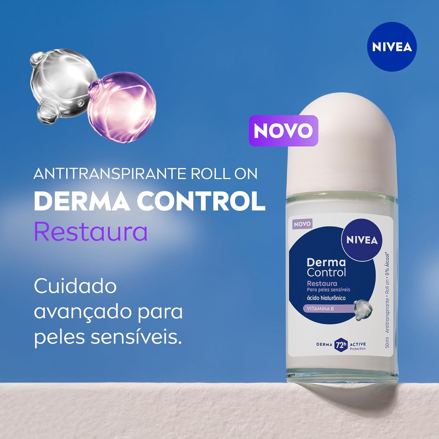 - NIVEA Desodorante Roll-on Derma Control Restaura 50ml - Cuidado para a pele sensível com proteção avançada de 72h.