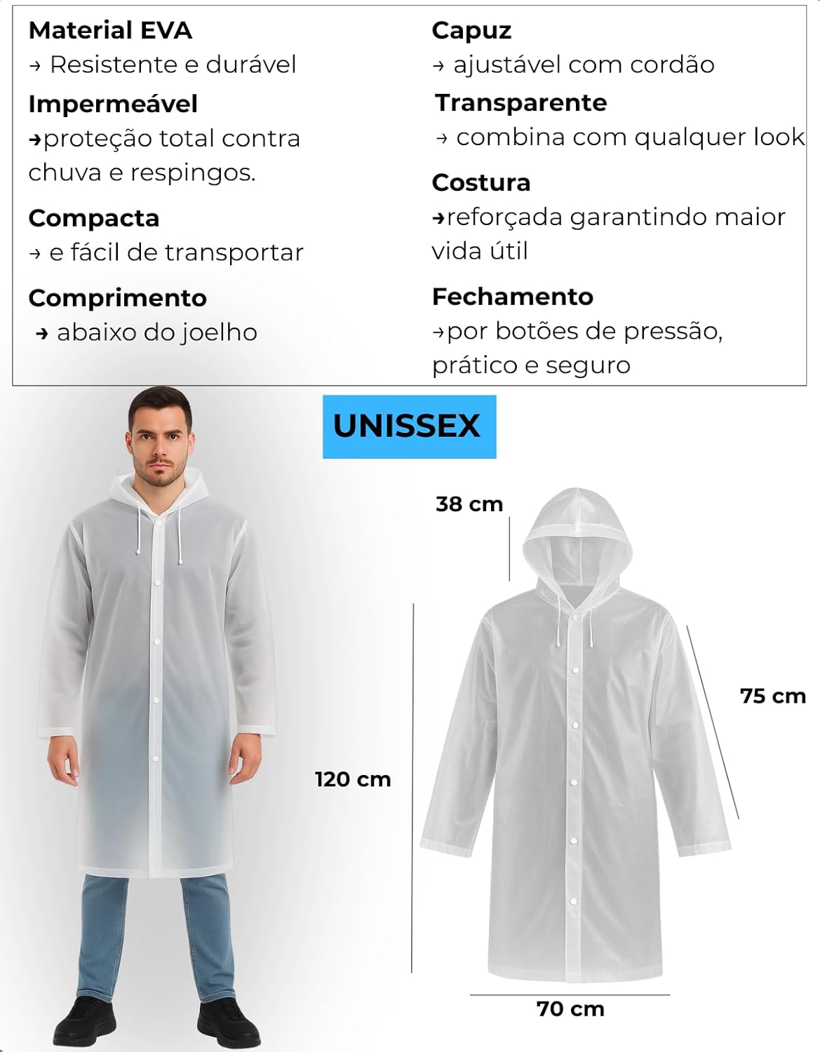 Compre online Kit 2 Capa De Chuva EVA Com Capuz Transparente Unissex Impermeável Reforçada Fechamento Botão Feminina Masculina Poncho Reutilizavel Para Evento Show na Amazon. Frete GRÁTIS em milhares de produtos com o Amazon Prime. Encontre diversos produtos da marca Genérico com ótimos preços.