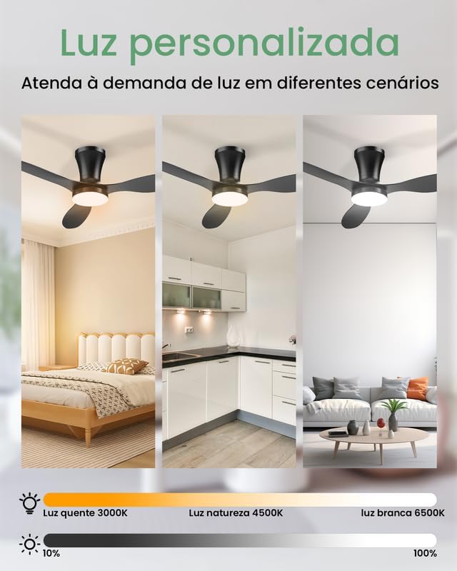 - Ventilador de Teto Moderno: Design em preto ou branco, com linhas simples que valorizam a decoração. Além de refrescar, ilumina o ambiente com LED de memória. Um ventilador de teto que deixa sala, quarto ou sala de jantar mais aconchegantes e sofisticados, unindo beleza e funcionalidade no dia a dia.