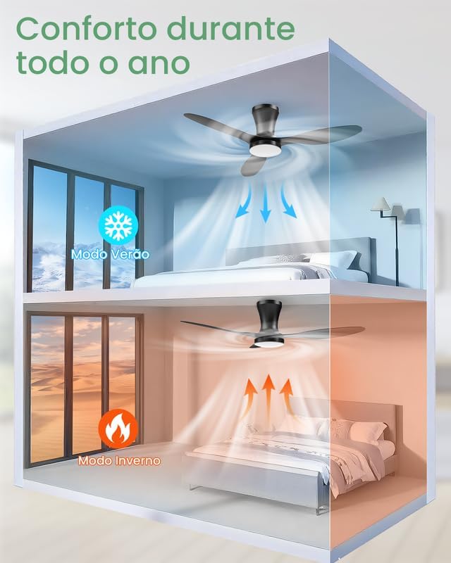 - Ventilador Teto Silencioso e Eficiente: Motor BLDC de alta performance, comparável ao inverter, garante menor consumo de energia e longa durabilidade. Mesmo em alta velocidade, mantém baixo nível de ruído, ideal para estudo, trabalho ou uma noite de sono tranquila. Ventilador teto que combina eficiência e conforto.